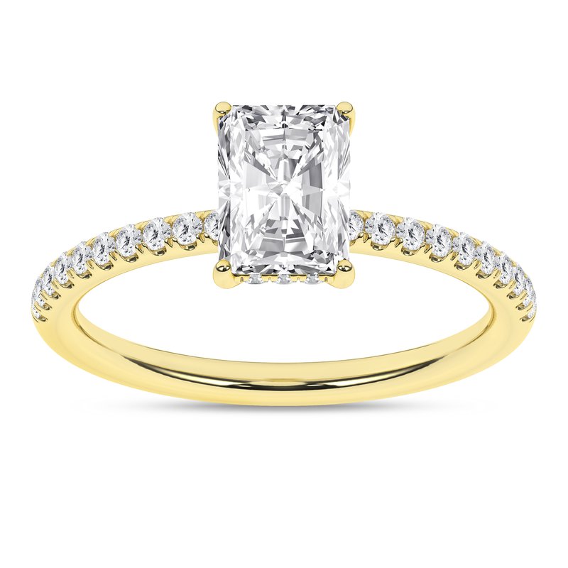Experience the brilliance of ethical luxury. This complete, lab-created masterpiece blends classic elegance with modern sustainability. Let its total 1.74ctw radiant cut and round diamonds ignite your happily ever after.