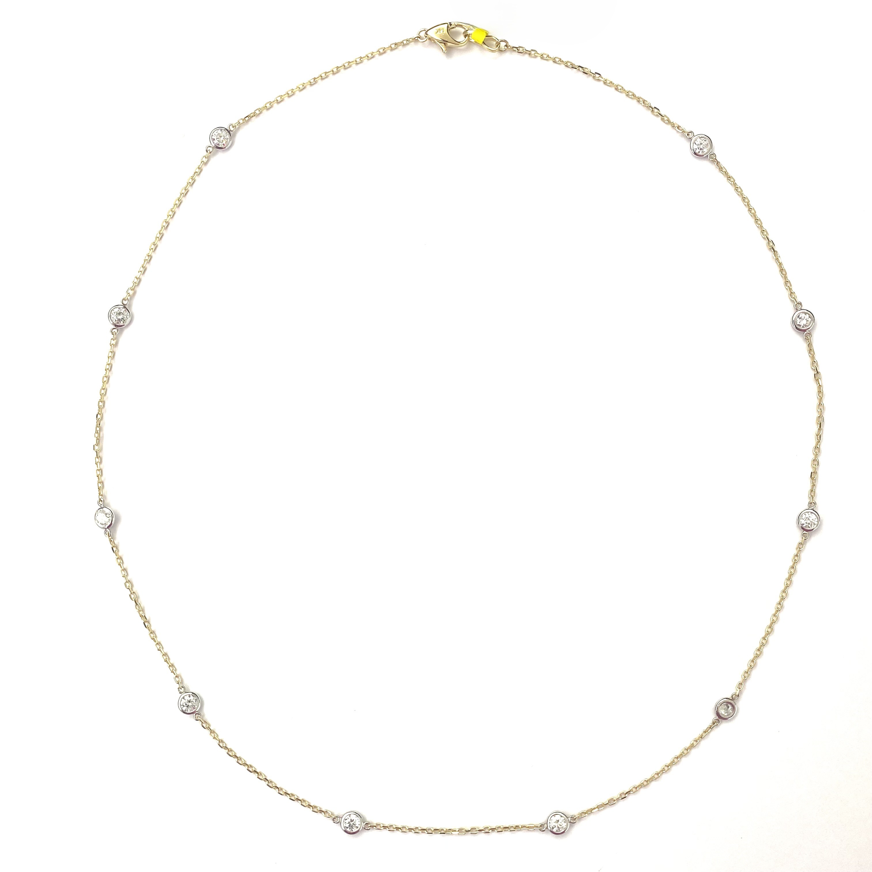 Dazzle with the subtle fire of this diamond station necklace. A delicate 14K yellow gold chain suspends ten brilliant diamonds, totaling 1.13 carats of mesmerizing sparkle.