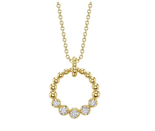 Radiate effortless elegance with this delicate pendant. The circular design, studded with brilliant diamonds, offers a touch of sophistication to any outfit. Make a statement that whispers of luxury and style with this must-have fashion accessory.