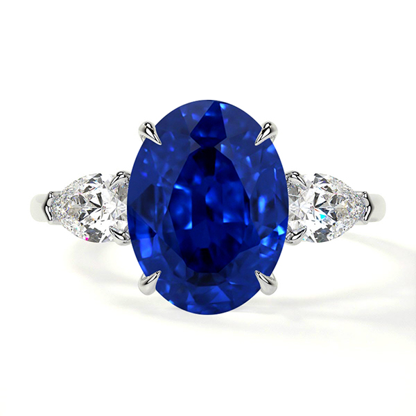A breathtaking 1.00ct oval sapphire blazes with regal blue fire, secured by a delicate trellis setting.