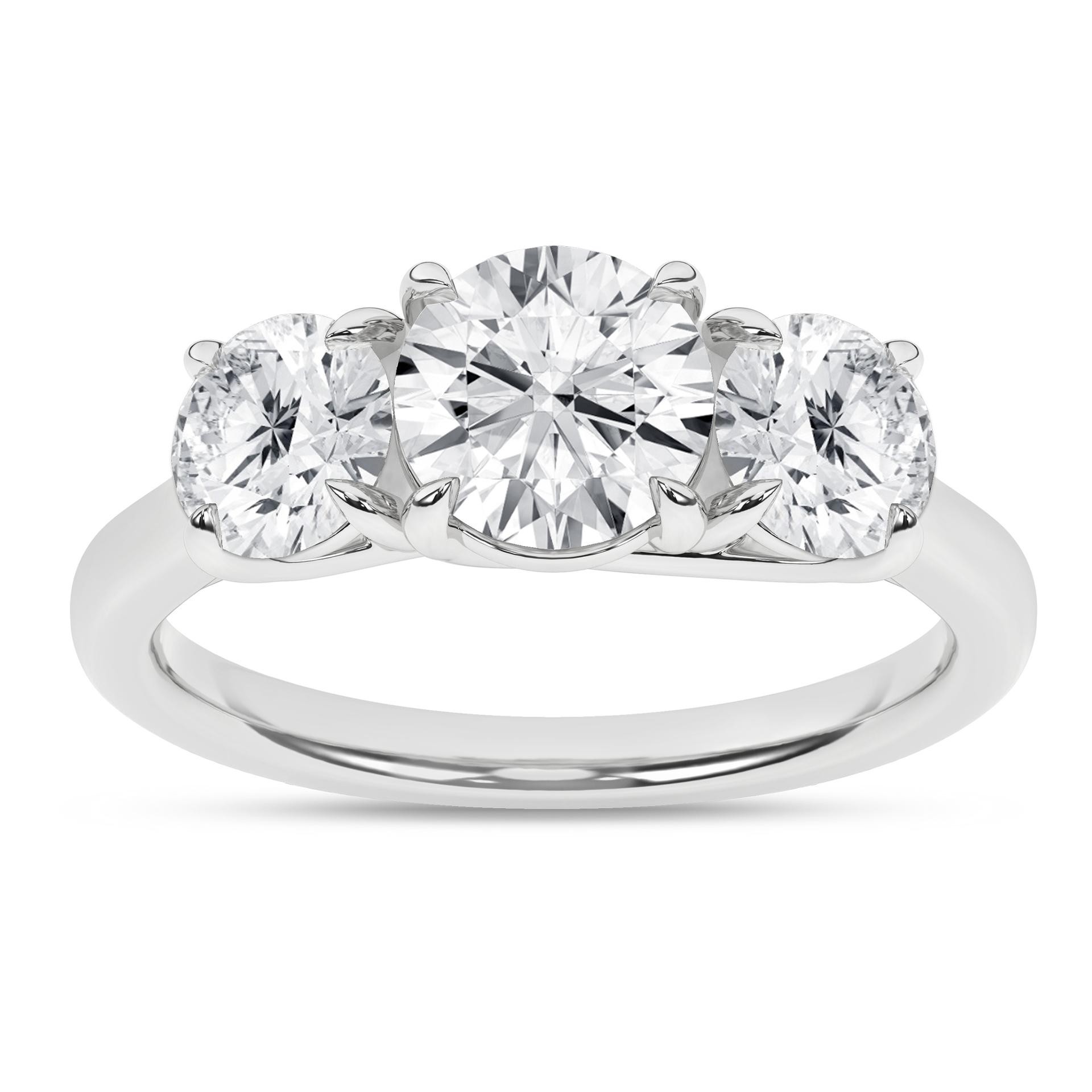 14K WHITE GOLD LAB GROWN THREE STONE RING 3.02ctw