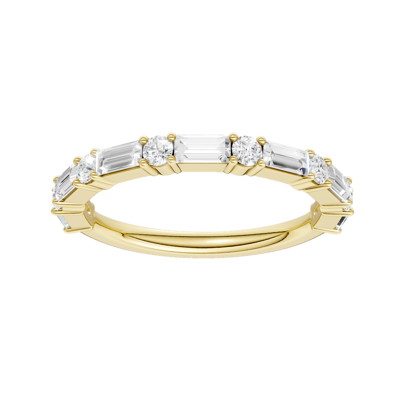 This stunning piece features thirteen dazzling lab-grown diamonds, totaling 0.50ctw, arranged in a captivating baguette and round design.
